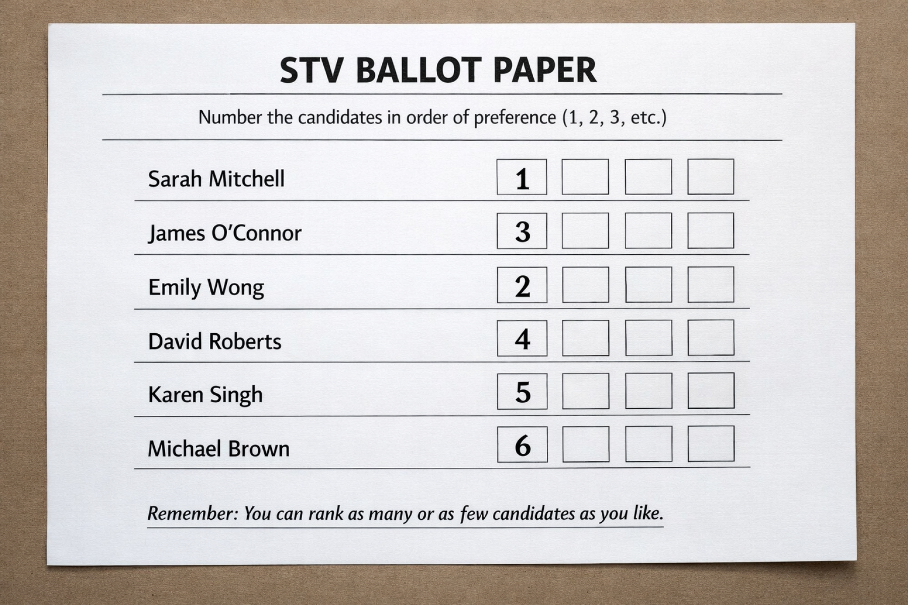 In short, STV aims to reflect voters’ preferences more accurately, while FPTP prioritises simplicity and decisive outcomes at the cost of proportionality.